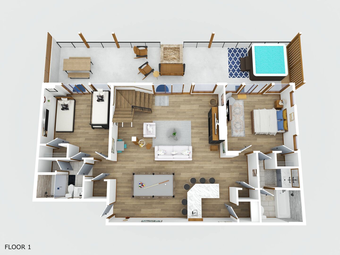 - Bedroom 3 – Twin bed plus twin-over-full bunk bed