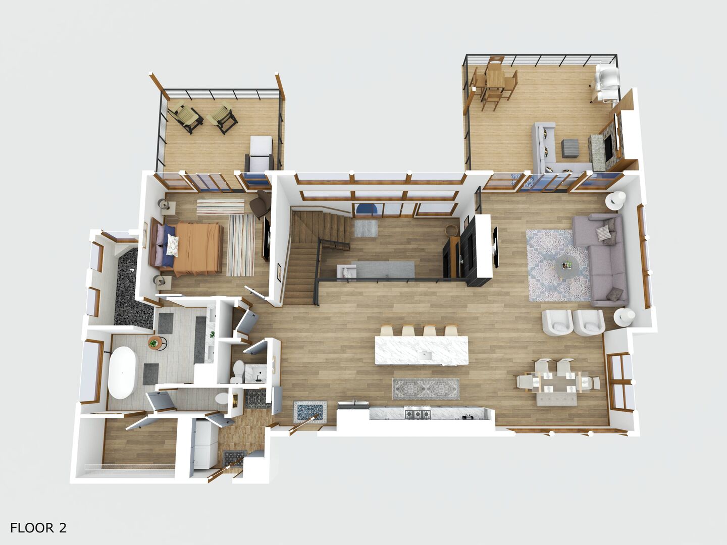 - Primary Suite 2 – King bed with en-suite bathroom