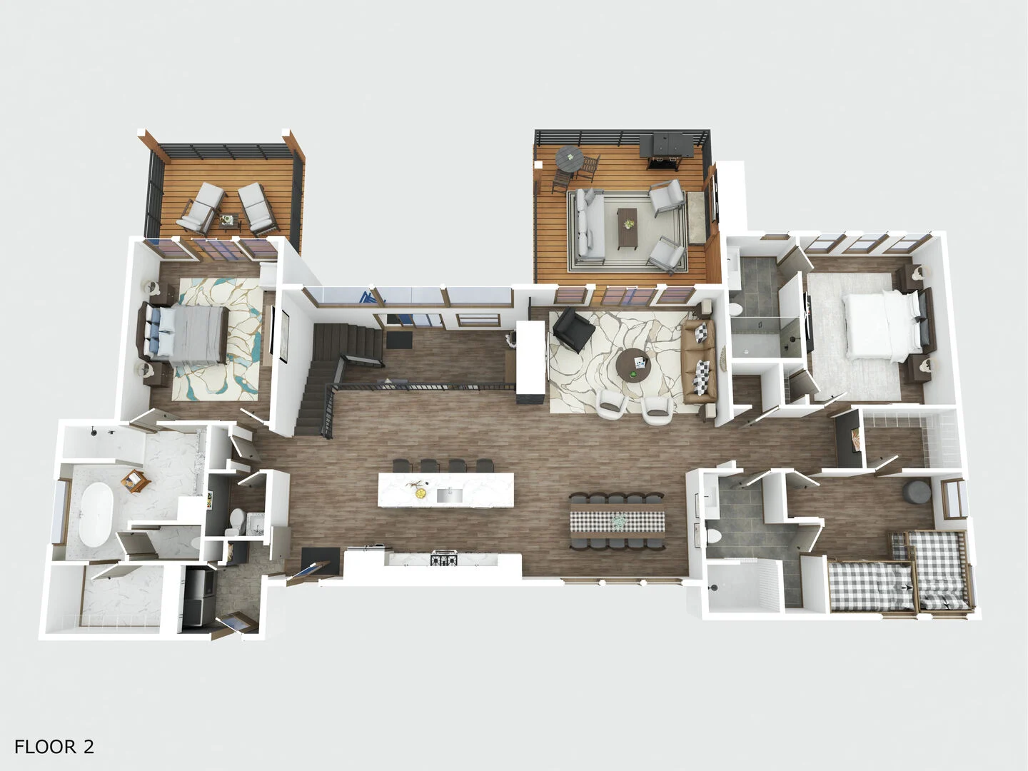 - Bedroom 4 – Two full beds with en-suite bathroom