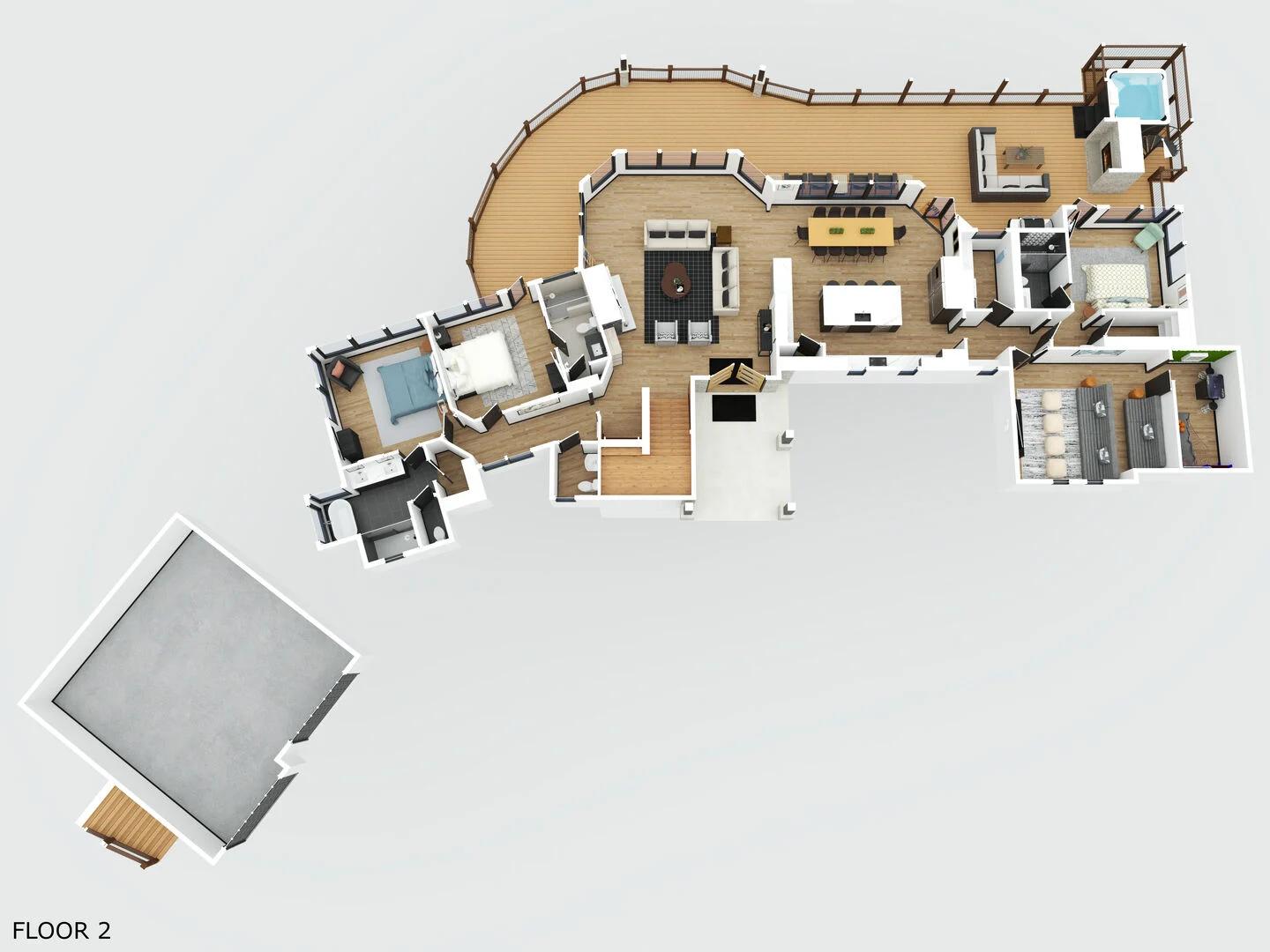 - Guest Bedroom: King Bed & Twin-over-Twin Bunk Bed (Private En-Suite Bathroom w/ Shower and Separate Tub)