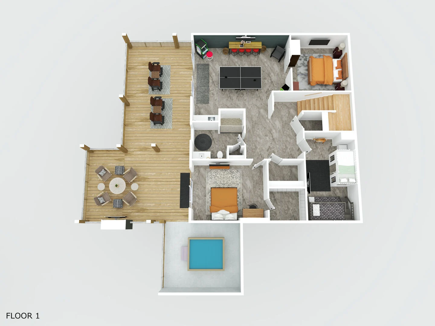 - Downstairs bar area and ping pong table for added entertainment