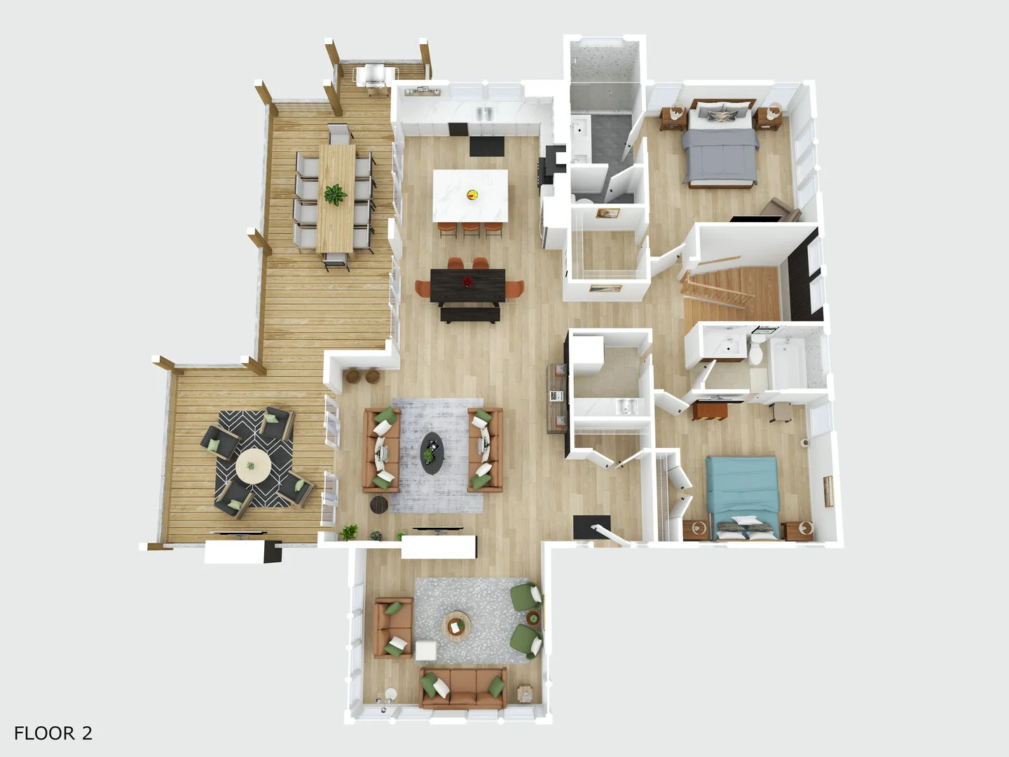 - Multiple gathering spaces ideal for entertaining and relaxing