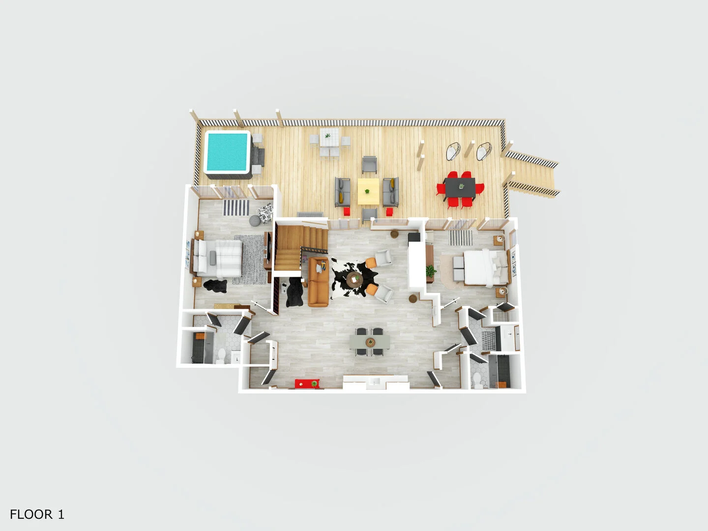 - Primary Suite 1 – King bed, en-suite bathroom