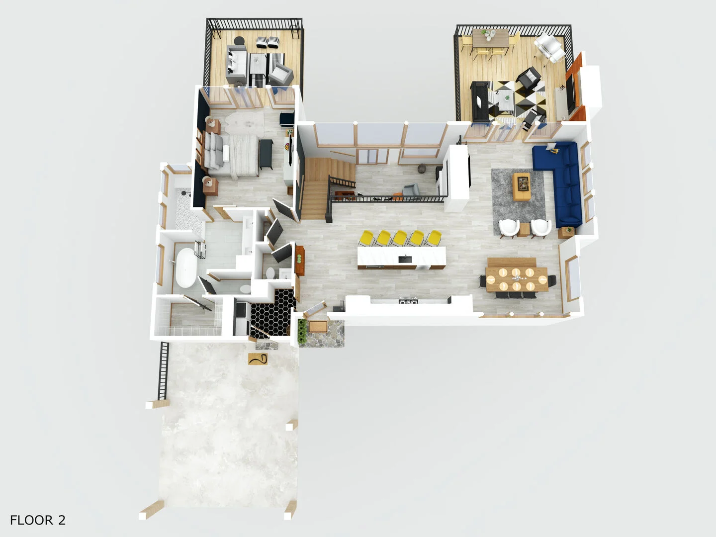 - Primary Suite 2 – King bed, en-suite bathroom