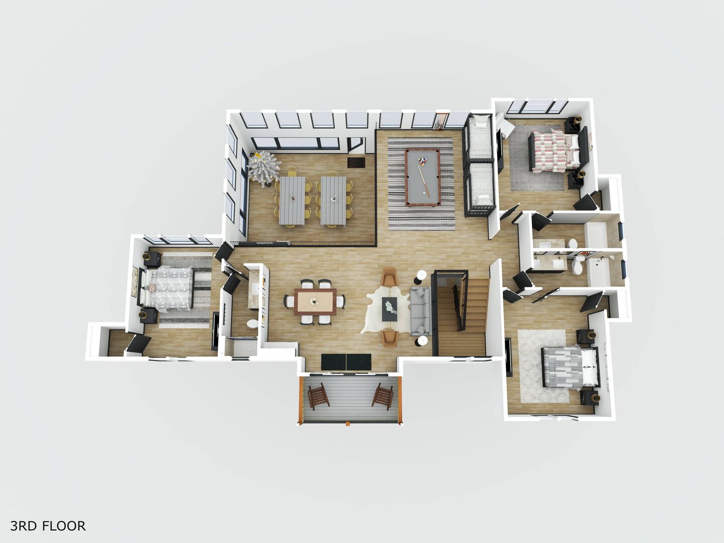 ~ Loft w/Pool Table, lounge area, card table, wet bar, and additional porch